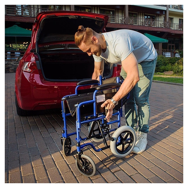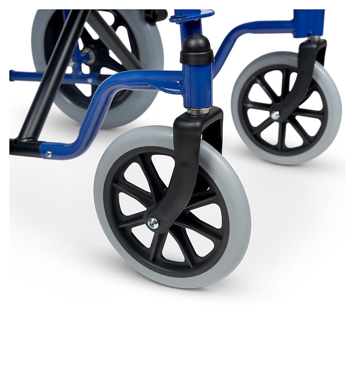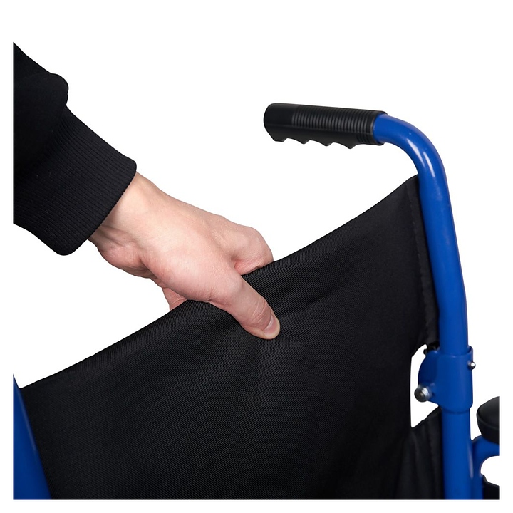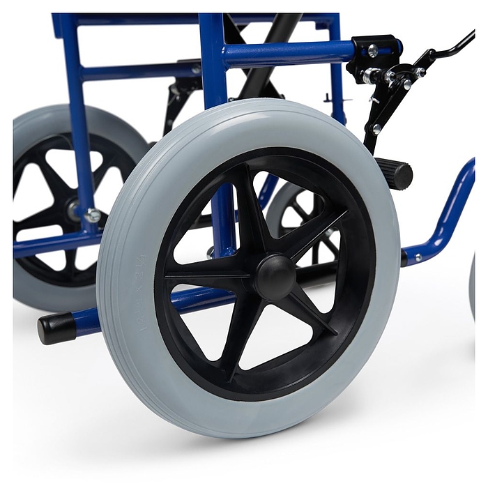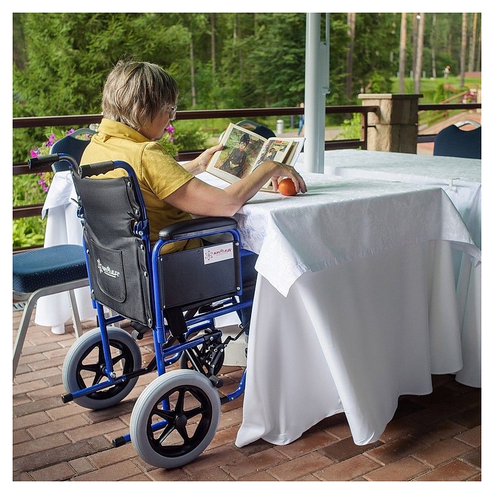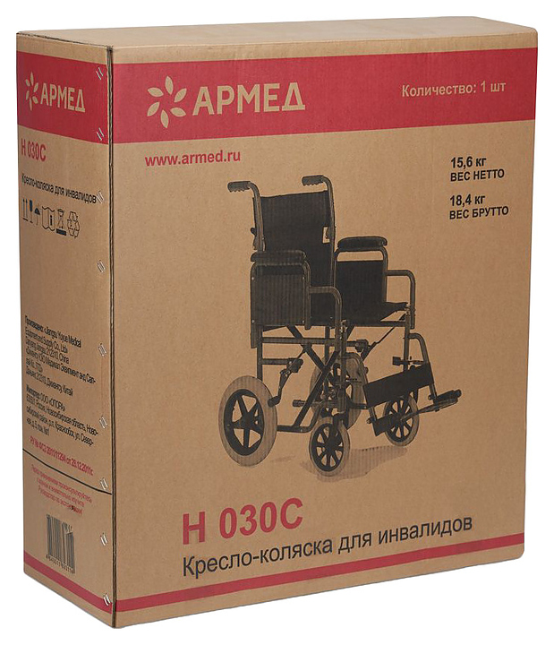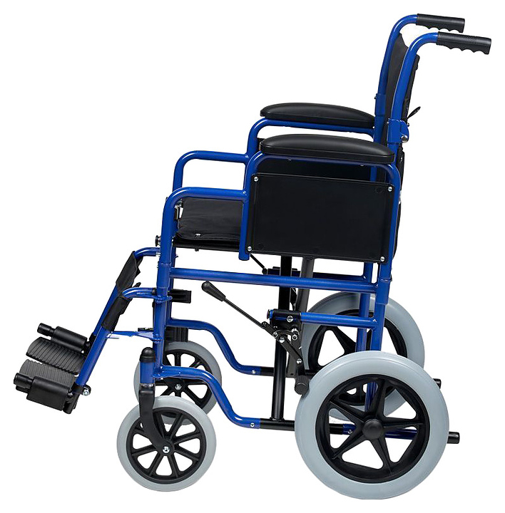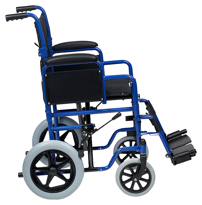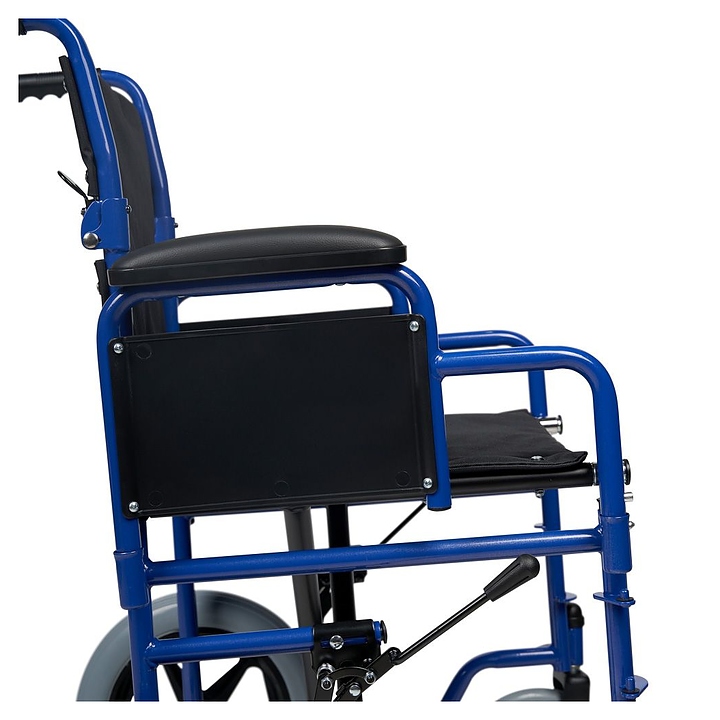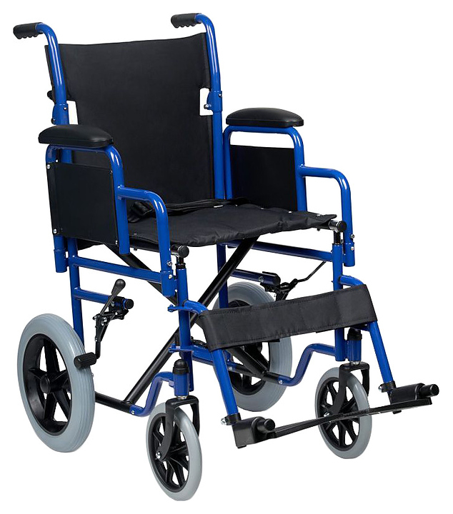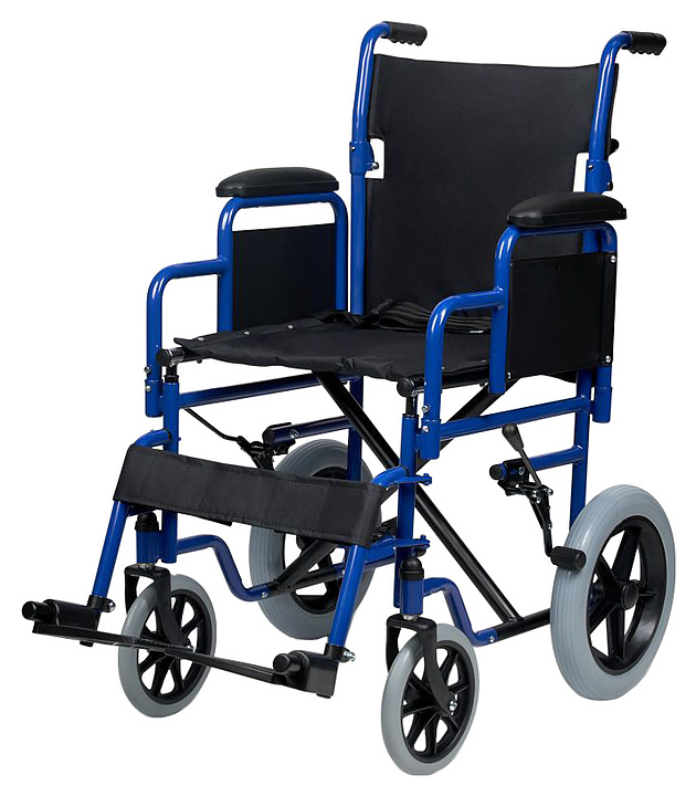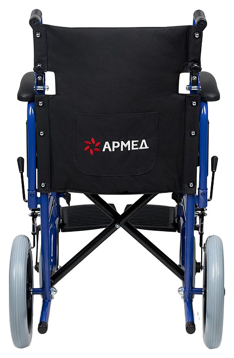 Кресло-каталка Армед H 030C предназначено для передвижения в сидячем положении людей с повреждениями опорно-двигательной системы и ослабленных из-за болезни пациентов в различных помещениях, а также на улице во время недолгих прогулок по дорожкам с твердым покрытием. Модель оснащена 2 фиксированными задними и 2 поворотными фронтальными небыстросъемными колесами с цельнолитыми шинами и 2 ведущими рукоятками для сопровождающего. Каркас выполнен из стального трубчатого профиля с антикоррозийным покрытием эмалью синего и черного цвета, спинка и сиденье – из устойчивой к растяжению влагонепроницаемой нейлоновой ткани черного цвета, подножки и рукоятки – из полимеров черного цвета, упаковка – картонная коробка. В комплект поставки входят универсальный ключ, набор крепежа, заводская упаковка и инструкция по эксплуатации. Особенности: