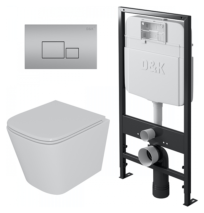 Унитаз подвесной с инсталляцией, сиденьем и клавишей смыва D&K Berlin DS1431604 безободковый, белый