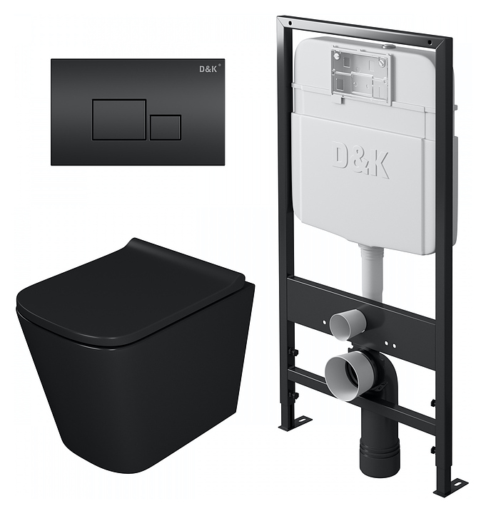 Унитаз подвесной с инсталляцией, сиденьем и клавишей смыва D&K Berlin DS1432502 безободковый, черный