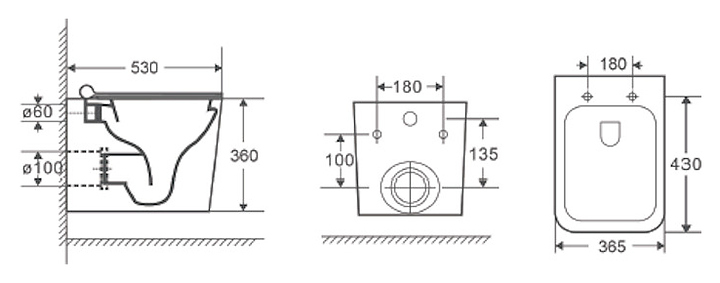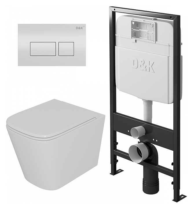 Унитаз подвесной с инсталляцией, сиденьем и клавишей смыва D&K Quadro DS1511601 безободковый, белый