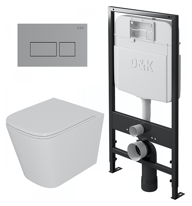 Унитаз подвесной с инсталляцией, сиденьем и клавишей смыва D&K Quadro DS1511605 безободковый, белый