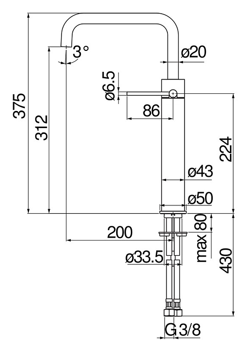 Смеситель для раковины NOBILI VELIS VE125158/3FLP без донного клапана