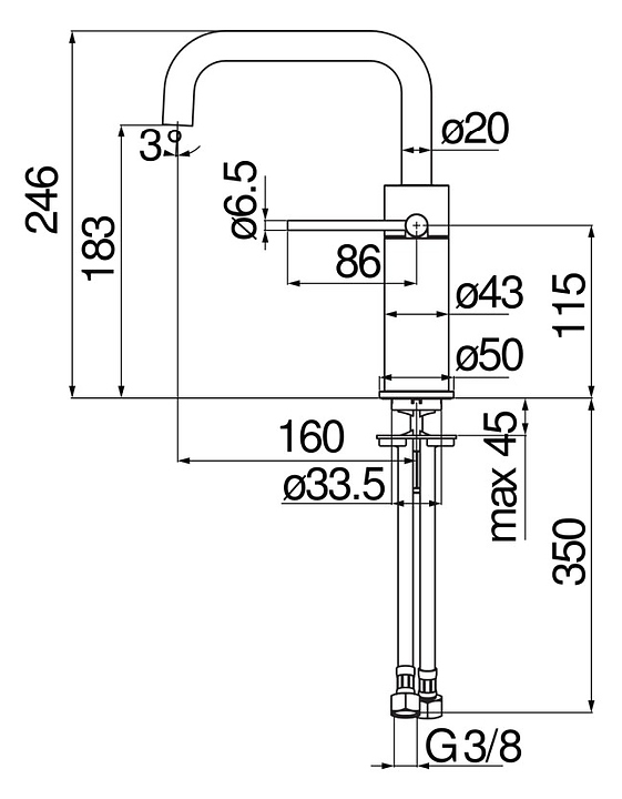 Смеситель для раковины NOBILI VELIS VE125118/3FLP без донного клапана