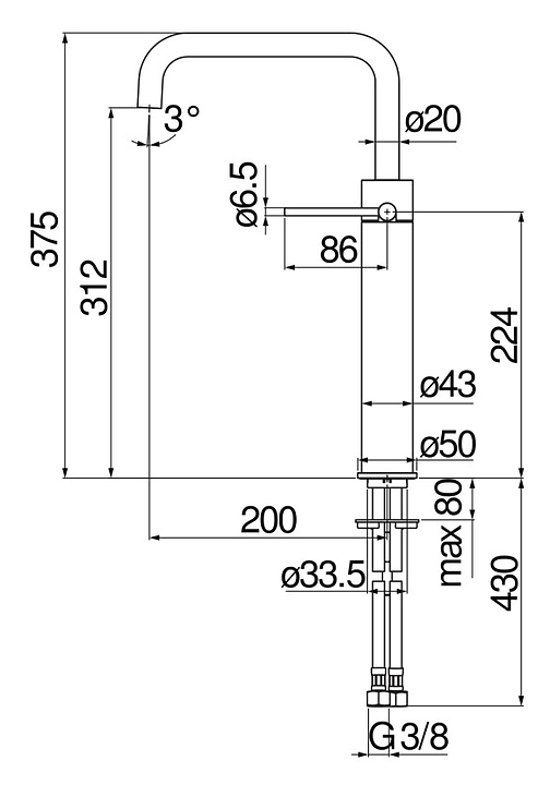 Смеситель для раковины NOBILI VELIS VE125158/3CR без донного клапана