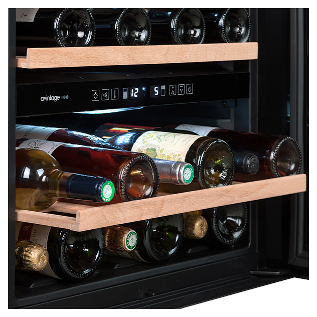 Винный шкаф Climadiff Avintage AVI60CDZA предназначен для хранения вина при определенном уровне влажности и температуры в ресторанах, специализированных магазинах, отелях, подсобных складских помещениях, в частных домах или квартирах. Модель оснащена электронным управлением, цифровым дисплеем и белым светодиодным освещением с выключателем. Полки выполнены из дерева, дверная рама - из черного оргстекла, дверь - из трехслойного стеклопакета. Особенности: