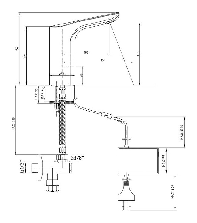 Электронный смеситель для раковины E.C.A. Luna 108108060EX предназначен для подачи горячей и холодной воды в ванных помещениях. Модель оснащена датчиком температуры и сенсором, распознающим движение в зоне чувствительности для бесконтактной подачи воды. Дополнительные характеристики:
