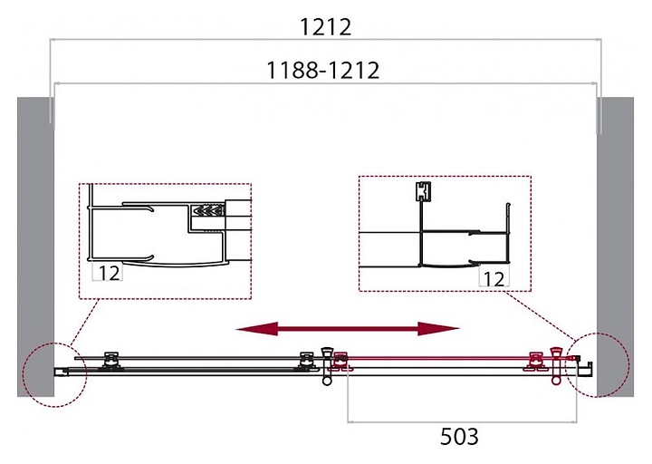 Дверь душевая BelBagno UNO-195-BF-1-120-C-NERO 120х195 см, в нишу, раздвижная, стекло прозрачное