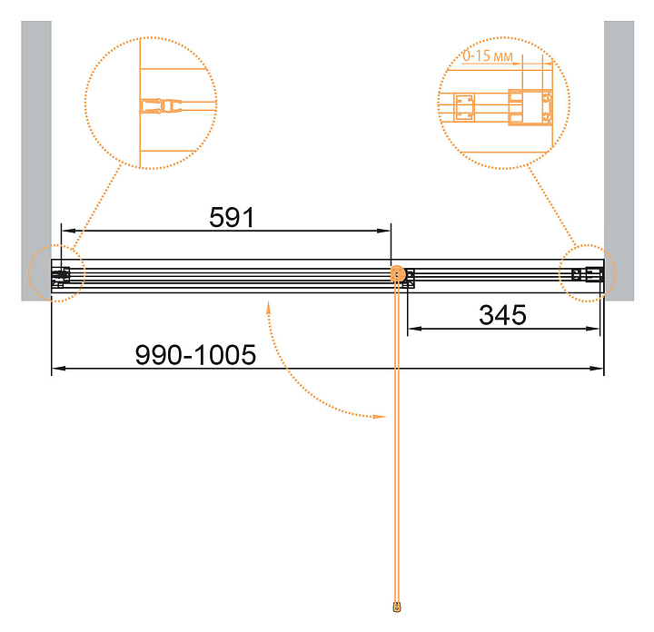 Дверь душевая CEZARES URBAN-B-12-100-C-CR 100х195 см, в нишу, прозрачное стекло, распашная