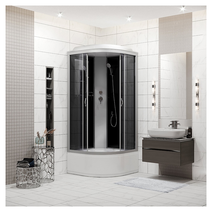 Душевая кабина Niagara NG-2507-14 предназначена для использования в ванных комнатах. Благодаря угловой конструкции и поддону в форме четверти круга модель можно вписать даже в ванные комнаты небольшой площади. Антискользящее покрытие и сиденье обеспечивают максимальный комфорт и безопасность при приеме душа. Кабина оснащена 2-х секционными раздвижными дверцами, крышей, верхним душем, зеркалом и полочкой для размещения мыльных принадлежностей. Полотно дверей и задние стенки выполнены из прочного закаленного стекла, профиль - из алюминия, который отличается устойчивостью к коррозии, долговечностью и износостойкостью, поддон - из ABS-пластика. Особенности: