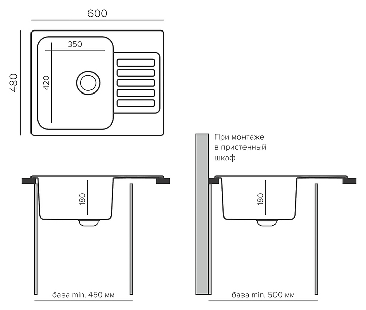 Мойка кухонная Polygran QuartzBond Bond-600 48х60 см, туман