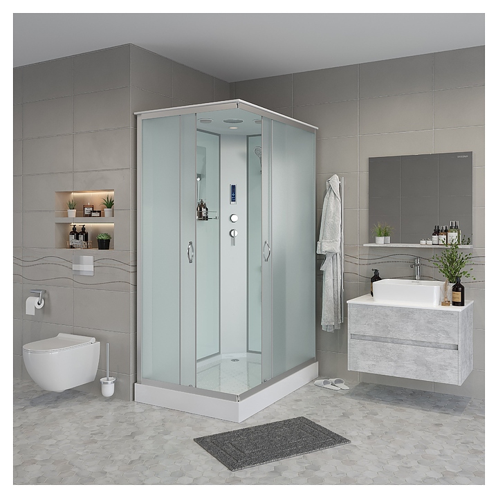 Душевая кабина Niagara NG-43975-14QP предназначена для использования в ванных комнатах. Антискользящее покрытие обеспечивает максимальный комфорт и безопасность при приеме душа. Кабина оснащена 2-хсекционными раздвижными дверцами, крышей, верхним душем, радио, освещением, зеркалом и полочкой для размещения мыльных принадлежностей. Полотно дверей и задние стенки выполнены из прочного закаленного стекла, профиль - из алюминия, который отличается устойчивостью к коррозии, долговечностью и износостойкостью, поддон - из ABS-пластика. Особенности: