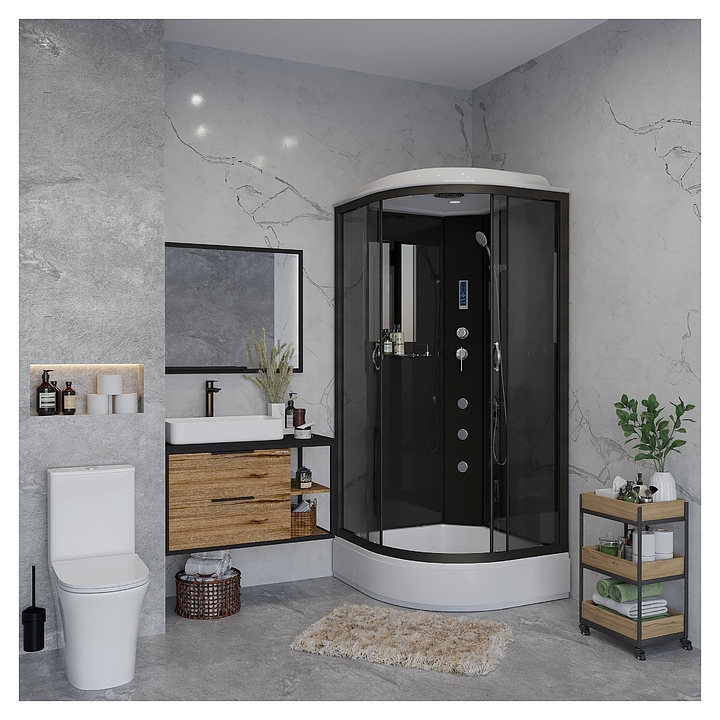 Душевая кабина Niagara NG-6501-14F предназначена для использования в ванных комнатах. Благодаря угловой конструкции и поддону в форме четверти круга модель можно вписать даже в ванные комнаты небольшой площади. Антискользящее покрытие обеспечивает максимальный комфорт и безопасность при приеме душа. Кабина оснащена 2-хсекционными раздвижными дверцами, верхним душем, крышей, освещением, радио, зеркалом и полкой для аксессуаров. Полотно дверей и задние стенки выполнены из прочного закаленного стекла, профиль - из алюминия, который отличается устойчивостью к коррозии, долговечностью и износостойкостью, поддон - из ABS-пластика. Особенности: