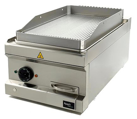 Жарочная поверхность Apach APTE-47TR/PL 700-й серии предназначена для обжарки мяса, рыбы и овощей на предприятиях общественного питания и торговли. Модель с закругленными краями и бортами оснащена электромеханической панелью управления с терморегулятором и 2 световыми индикаторами и выдвижным лотком для сбора остатков пищи, масла и жира. Рабочая поверхность выполнена из конструкционной стали. Дополнительные характеристики: