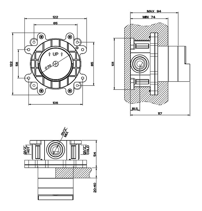 Скрытая часть Gessi 46112-031 предназначена для монтажа смесителей. Изделие выполнено из пластика. Характеристики: