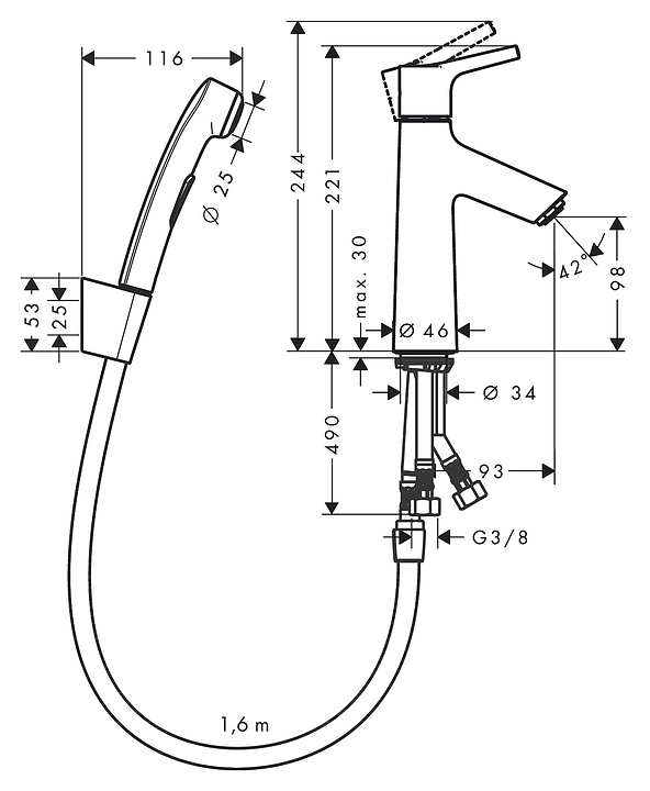 Смеситель для раковины с гигиеническим душем Hansgrohe Talis E 72290000 со сливным клапаном Push-Open
