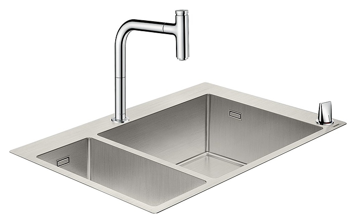 Кухонная мойка hansgrohe C71-F655-09 43206000 предназначена для установки в частных домах, квартирах, офисах, отелях, гостиницах и на различных предприятиях для мытья столовых принадлежностей, посуды, приборов, инвентаря и продуктов питания. Модель оснащена высоким смесителем с выдвижным изливом с магнитной системой крепления душа MagFit, коробом sBox для тихого, плавного, безопасного перемещения шланга в кухонном шкафу, под столешницей и керамическим картриджем, обеспечивающим плавный ход рычага смесителя, контроль и точность при выборе напора и температуры воды. Изделие выполнено из нержавеющей стали, которая отличается практичностью и долговечностью использования в помещениях с повышенной влажностью. В комплект поставки входят смеситель для кухни, sBox и система слива с ручным управлением. Особенности:
