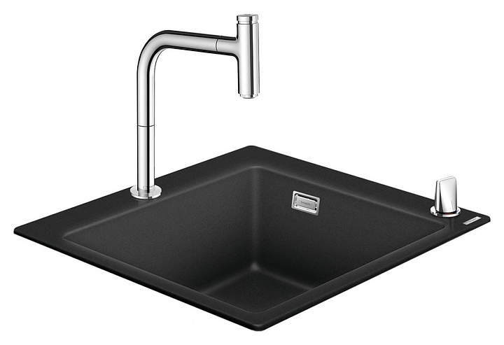 Кухонная мойка hansgrohe C51-F450-06 43217000 предназначена для установки в частных домах, квартирах, офисах, отелях, гостиницах и на различных предприятиях для мытья столовых принадлежностей, посуды, приборов, инвентаря и продуктов питания. Модель оснащена высоким смесителем с выдвижным изливом с магнитной системой крепления душа MagFit, коробом sBox для тихого, плавного, безопасного перемещения шланга в кухонном шкафу, под столешницей и керамическим картриджем, обеспечивающим плавный ход рычага смесителя, контроль и точность при выборе напора и температуры воды. Благодаря QuickClean известковый налет и грязь на смесителе исчезнет в мгновение ока, достаточно просто протереть пальцем гибкие силиконовые вставки, технология Air Power позволяет смешивать воду с воздухом, что делает капли объемнее, легче и мягче. Изделие выполнено из SilicaTec, состоящей из смеси акриловых и кварцевых смол, для обработки этого материала используются круглые частицы кварцевого песка, которые считаются наиболее сложными элементами гранита, что обеспечивает грязеотталкивающие свойства поверхности и мойка становится гладкой, твёрдой и не имеет пор. В комплект поставки входят смеситель для кухни, sBox и система слива с ручным управлением. Особенности: