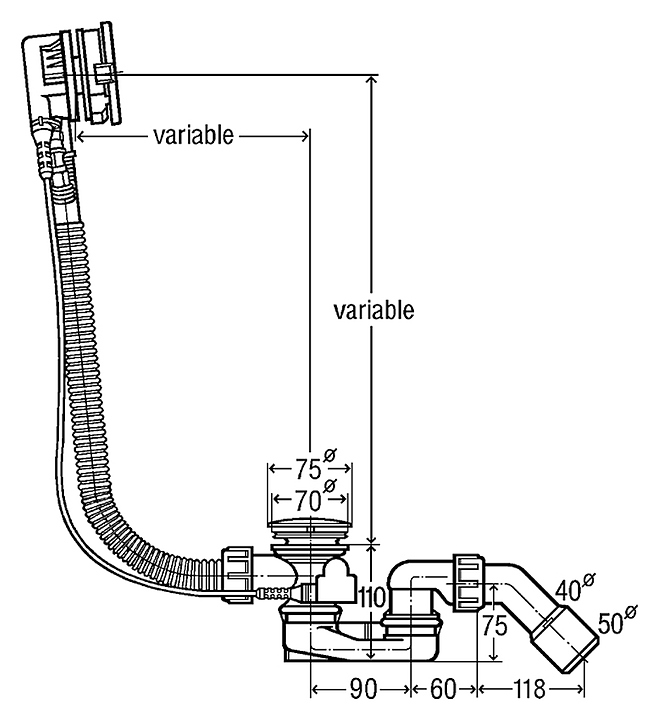 Слив-перелив Viega Simplex Trio Visign MT5 6166.42 предназначен для установки с ваннами. Изделие выполнено из пластика. В комплект поставки входят гибкая переливная труба хромированная, поворотная накладка переливного отверстия (верхняя) хромированная, пробка донного клапана, гидрозатвор, отводящее колено 45° донный клапан из нержавеющей стали. Особенности: