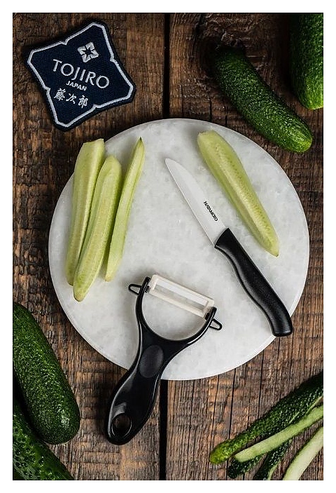 Набор ножей Hatamoto H00482 используется на предприятиях общественного питания и в домашних условиях для обработки овощей и фруктов. Набор состоит из фрутоножа и овощечистки. Изделия оснащены удобными рукоятками. Лезвия выполнены из высококачественной циркониевой керамики, рукоятки – из АБС-пластика черного цвета. Дополнительные характеристики: