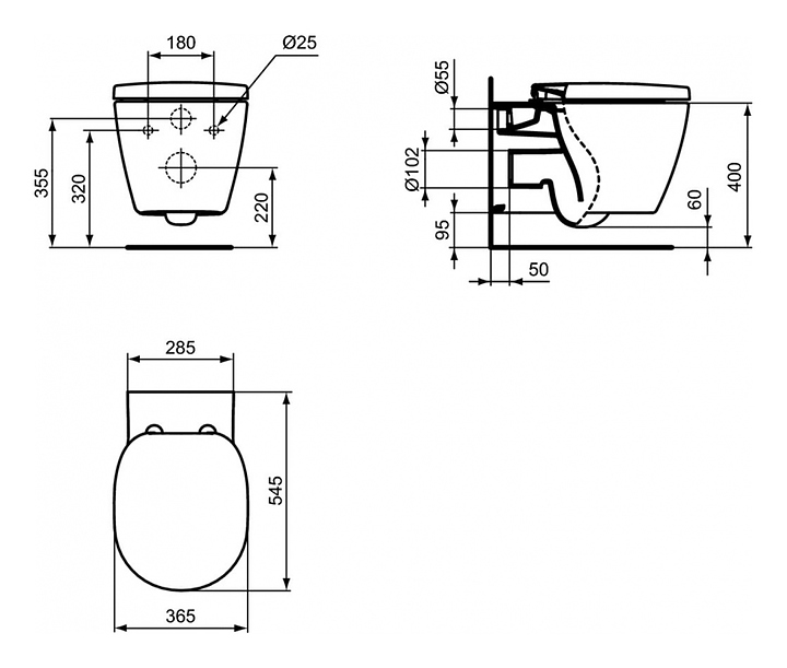 Унитаз с инсталляцией Ideal Standard Connect AquaBlade E047901 выполнен в современном стиле. Благодаря подвесной конструкции модель не занимает много места в помещении, а свободное пространство под чашей делает уборку в ванной комнате гораздо легче. Безободковое исполнение позволяет предотвратить скопление бактерий и грязи на внутренней поверхности чаши и обеспечивает ее чистоту и гигиеничность использования, а инновационная технология смыва AquaBlade обеспечивает идеальное качество смыва. Изделие выполнено из керамики, которая обладает повышенной прочностью, устойчивостью к негативным внешним факторам, а также способна долгое время сохранять идеальную белизну, сиденье с крышкой - из дюропласта, обладающего антибактериальным эффектом, а также повышенной устойчивостью к механическим воздействиям, влажности и средствам дезинфекции, шарниры крышки - из металла и пластика. В комплект поставки входят унитаз Connect AquaBlade E047901 с крепежом TT0299327, сиденье Connect E712701, инсталляция Prosys 120 Р R027767, панель смыва Oleas Р1 R0116AA, крепеж для унитаза, крепежи для рамы, подсоединения входящей и сливной труб, сливной патрубок (колено) с адаптором Ø90/110 мм, резиновая прокладка для унитаза Ø45 мм, защитная коробка и запорный клапан G ½". Особенности: