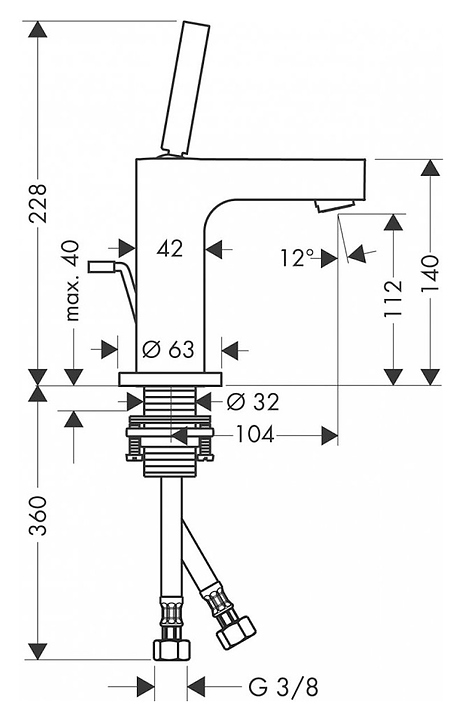 Смеситель для раковины Axor Citterio 39010000 с донным клапаном, хром