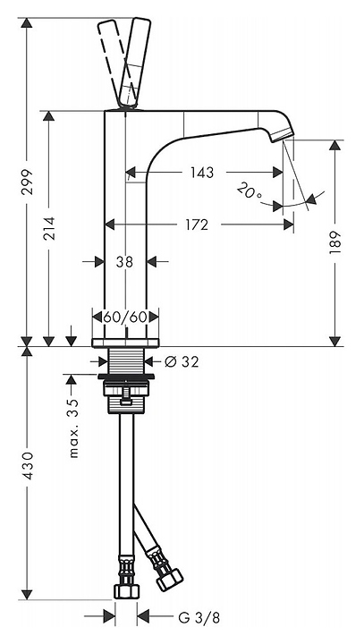 Смеситель для раковины Axor Citterio E 36103000 с донным клапаном, хром