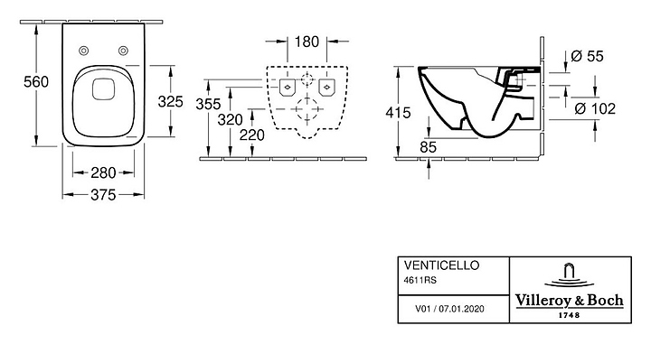 Унитаз подвесной Villeroy & Boch Venticello 4611RS01 с сиденьем soft-close