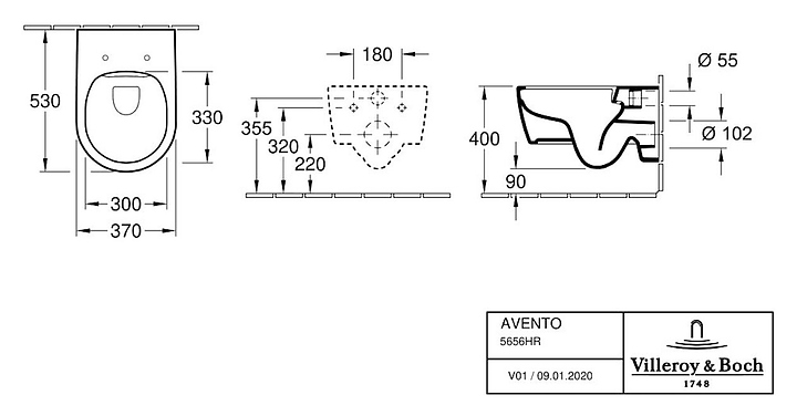 Унитаз подвесной Villeroy & Boch Avento 5656HR01 с сиденьем