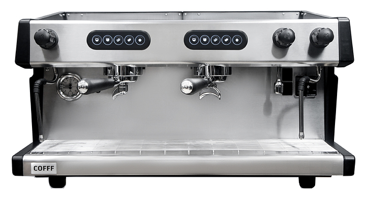 Кофемашина COFFF LIVE 2 GR A предназначена для приготовления кофе на предприятиях общественного питания и торговли, в частных домах и квартирах. Модель оснащена классической системой заваривания кофе c предсмачиванием, электронной системой дозирования, 2 кранами для подачи пара и краном подачи кипятка. Корпус выполнен из пищевой нержавеющей стали. Комплектация: