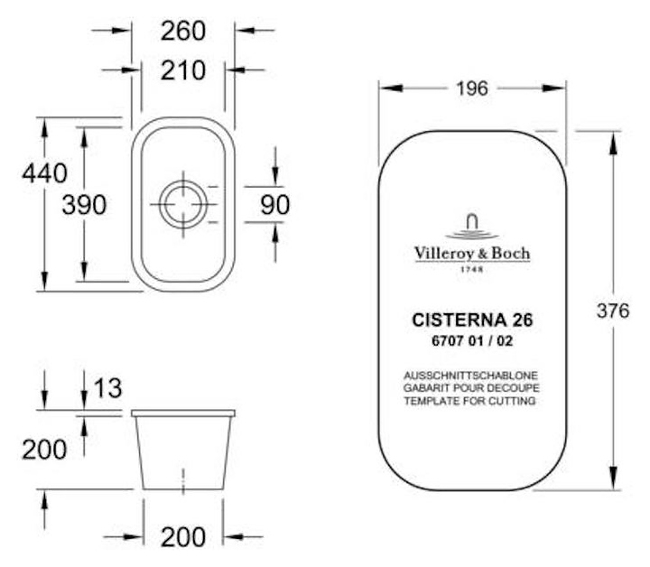 Мойка кухонная Villeroy & Boch Venticello 670701KG 26х44 см