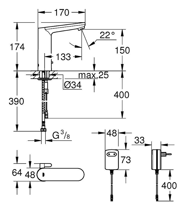Смеситель для раковины Grohe Eurosmart Cosmopolitan E 36421000 предназначен для подачи горячей и холодной воды в ванных помещениях. Модель оснащена инфракрасным датчиком для мониторинга, настройки и сервисного обслуживания. Обратный клапан защищает пропускает воду только в одном направлении и предотвращают её движение в противоположном, что гарантирует комфорт и безопасность. Смеситель отличается простой установкой благодаря системе быстрого монтажа. Особенности: