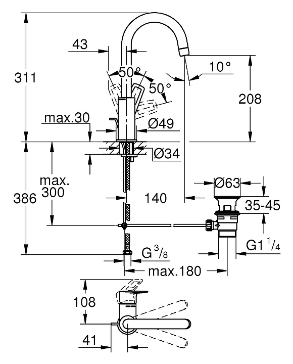 Смеситель для раковины Grohe BauLoop 23763001 предназначен для подачи горячей и холодной воды в ванных помещениях. Модель оснащена керамическим картриджем, обеспечивающим плавный ход рычага смесителя, контроль и точность при выборе напора и температуры воды. Смеситель отличается простой установкой благодаря системе быстрого монтажа и оснащен ограничителем температуры. Изделие выполнено из латуни, которая отличается прочностью, долговечностью и устойчивостью к перепадам температуры, рычаг - из металла. В комплект поставки входит донный клапан. Дополнительные характеристики: