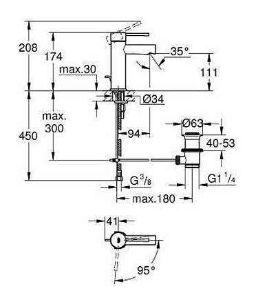 Смеситель для раковины Grohe Essence+ 23379001 предназначен для подачи горячей и холодной воды в ванных помещениях. Модель оснащена керамическим картриджем, обеспечивающим плавный ход рычага смесителя, контроль и точность при выборе напора и температуры воды. Смеситель отличается простой установкой благодаря системе быстрого монтажа и оснащен ограничителем температуры. Подача холодной воды происходит при центральном положении рычага, что экономит ресурс. Изделие выполнено из латуни, которая отличается прочностью, долговечностью и устойчивостью к перепадам температуры, рычаг - из металла. В комплект поставки входит донный клапан. Дополнительные характеристики:
