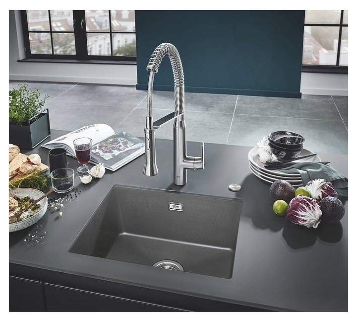 Мойка Grohe K700U 31654AT0 предназначена для рационального планирования рабочего места на кухне. Модель устанавливается сверху или под столешницу и оснащена системой быстрого монтажа. Технология повышенного комфорта Whisper сводит уровень шума во время смыва к минимуму. Изделие выполнено из кварцевого композита, который отличается устойчивостью к любым типам загрязнений и химическим веществам. В комплект поставки входят сливной гарнитур, корзинка и монтажный набор. Дополнительные характеристики: