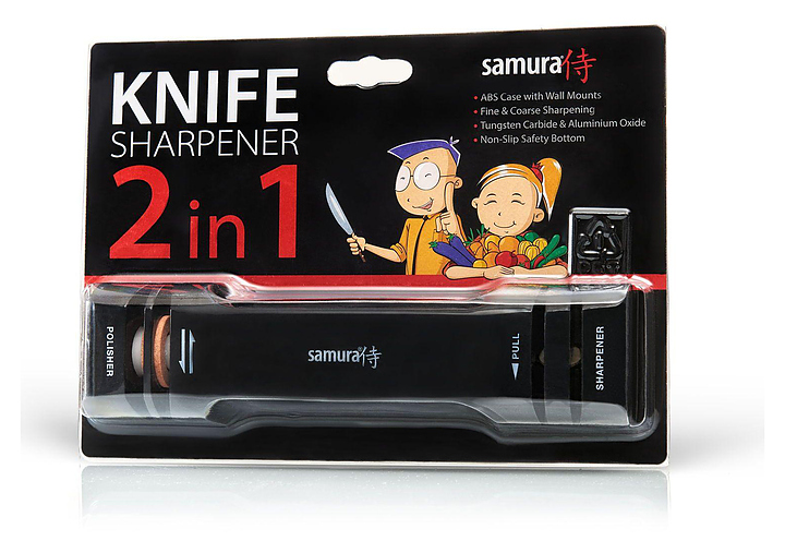 Двухфункциональная точилка Samura KSS-2000 предназначена для заточки ножей на предприятиях общественного питания и торговли, в частных домах и квартирах. Изделие имеет 4 парных отверстия, предназначенных для грубой заточки и полировки клинка с обеих сторон. Особенности: