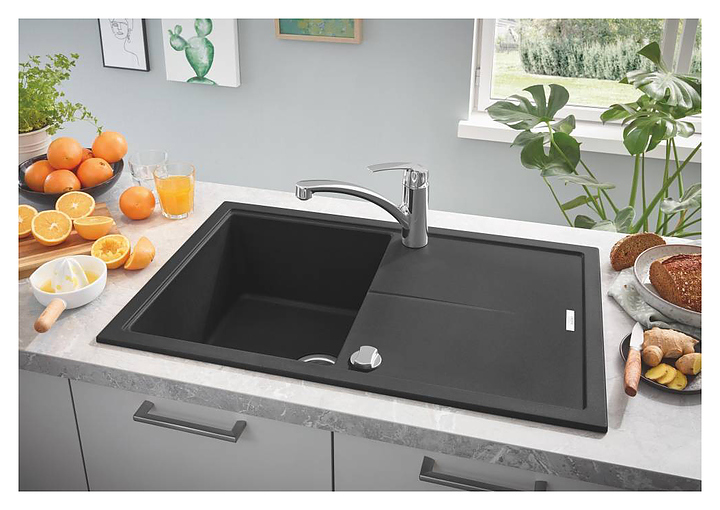 Мойка Grohe K400 31639AP0 предназначена для рационального планирования рабочего места на кухне. Модель устанавливается сверху на столешницу, оснащена системой быстрого монтажа и клапаном-автоматом. Крыло-сушилка служит подставкой для посуды и продуктов. Технология повышенного комфорта Whisper сведет уровень шума во время смыва к минимуму. Изделие выполнено из кварцевого композита, который отличается устойчивостью к любым типам загрязнений и химическим веществам. В комплект поставки входят сливной клапан с поворотной ручкой, сливной гарнитур, корзинчатый вентиль и монтажный набор. Дополнительные характеристики: