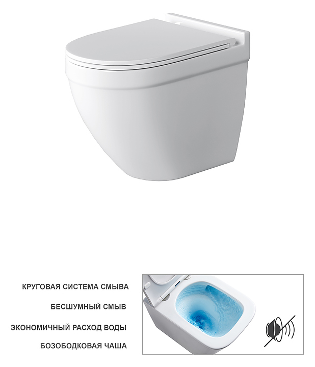 Подвесной унитаз Grossman Торнадо GR-4483SQ выполнен в современном стиле. Благодаря подвесной конструкции модель не занимает много места в помещении, а свободное пространство под чашей делает уборку в ванной комнате гораздо легче. Модель оснащена системой "Антивсплеск", которая предотвращает всплеск воды при смыве. Безободковое исполнение позволяет предотвратить скопление бактерий и грязи на внутренней поверхности чаши и обеспечивает ее чистоту и гигиеничность использования. Изделие выполнено из фаянса, который обладает повышенной прочностью и устойчивостью к негативным внешним факторам, а также долгое время сохраняет идеальную белизну и не впитывает запахи и грязь, сиденье - из качественного дюропласта. В комплект поставки входит тонкое сиденье с металлическими креплениями. Особенности: