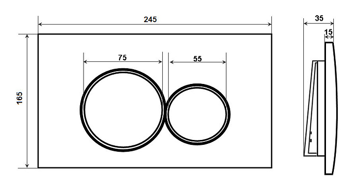 Кнопка смыва TIMO KULO FP-001MB предназначена для установки с инсталляциями смывных бачков скрытого монтажа. Аксессуар прямоугольной формы с 2 круглыми клавишами, непосредственно приводящими в действие экономный режим большого и малого механизм смыва. Дополнительные характеристики: