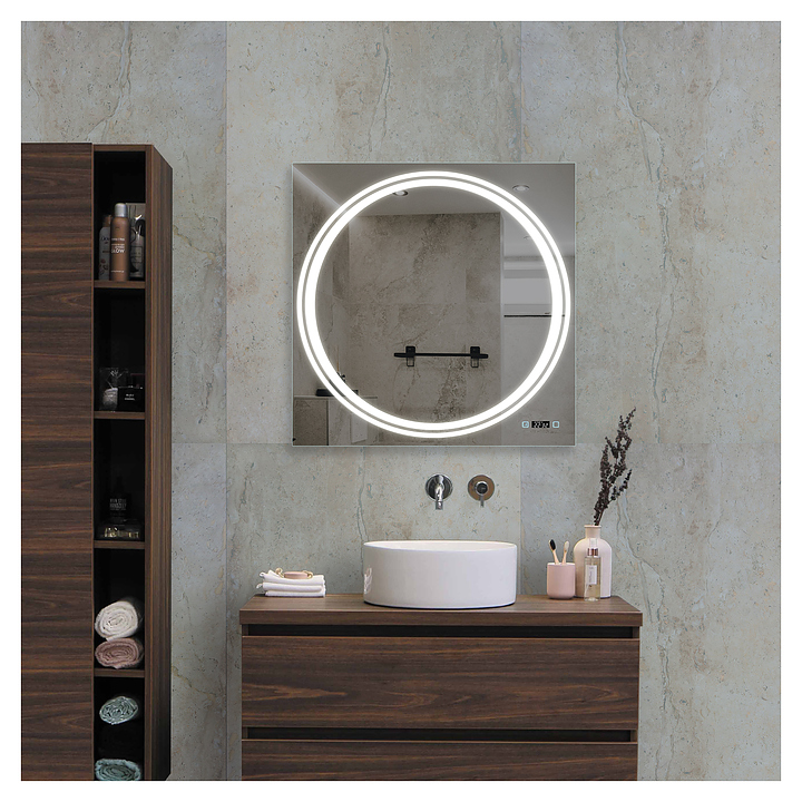 Зеркало Silver Mirrors Eclipse LED-00002529 дополнит интерьер ванной комнаты. Благодаря подвесной конструкции модель не занимает много места, что позволяет экономить пространство в ванной комнате, а также облегчает уборку. Зеркало оснащено LED-подсветкой, сенсорным выключателем с функцией плавного диммирования, запоминанием последнего значения, ЖК часами и датчиком температуры. Короткие касания светящейся области включают и выключают подсветку, длительное касание меняет яркость свечения. Изделие выполнено из стекла высшего качества M0, которое отличается влагостойкостью и минимальными оптическими искажениями. Дополнительные характеристики: