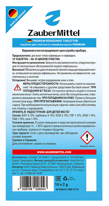 Таблетки для очистки кофейной системы ZauberMittel ZMP CT10, 10 таблеток