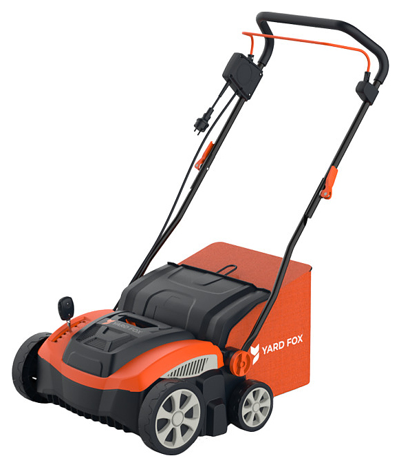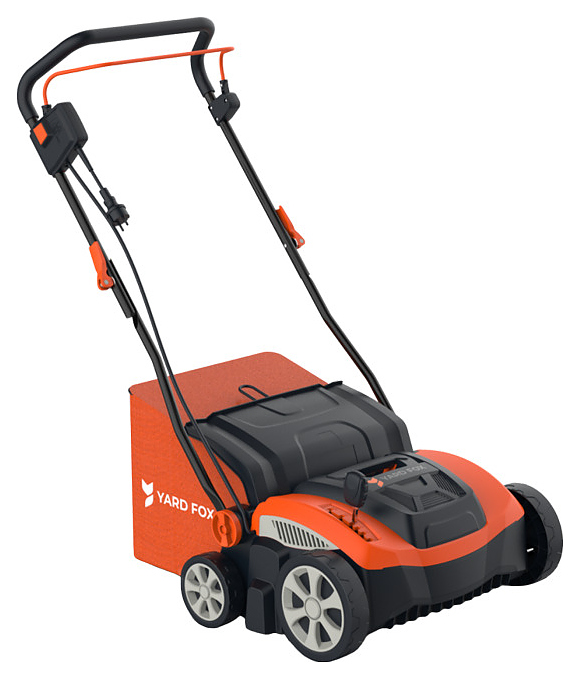 Вертикуттер YARD FOX 36VE предназначен для удаления сухой травы и обеспечения эффективного проникновения в почву газона воздуха и воды на частных приусадебных участках и придомовых территориях. Модель оcнащена электродвигателем, 2 сменными рабочими валами: с 20 ножами для аэрации и 24 пружинами для прореживания, дугообразной ведущей рукояткой, 4 колесами и кабелем питания с вилкой. Ведущая рукоятка выполнена из трубчатого стального профиля с антикоррозийным покрытием черного цвета, травосборник – из износостойкой ткани оранжевого цвета, элементы кожуха – из ударопрочного пластика в оранжево-черной цветовой гамме, ручки рычагов и фиксаторы – из оранжевого пластика. Особенности: