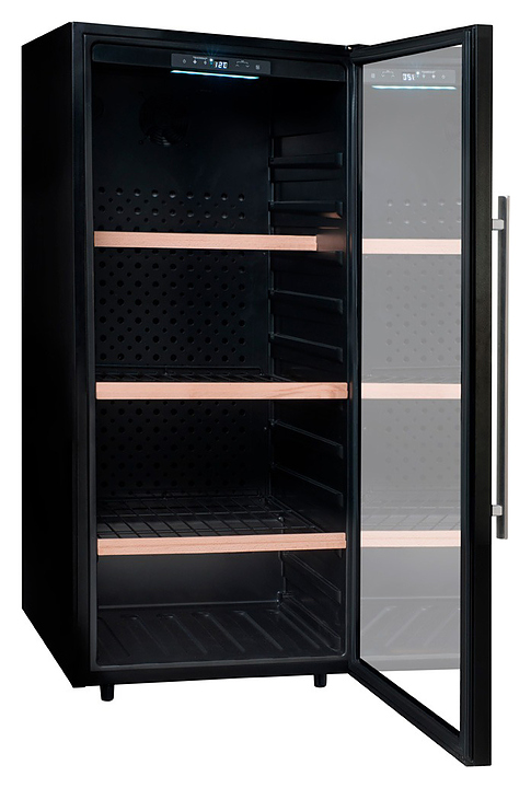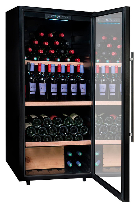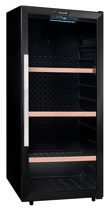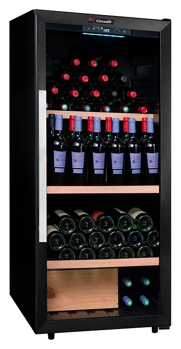 Винный шкаф Climadiff CPW160B1 предназначен для кратковременного хранения вина при определенном уровне влажности и температуры в ресторанах, специализированных магазинах, отелях, подсобных складских помещениях, в частных домах или квартирах и подготовки вина к подаче на стол. Модель оснащена сенсорным цифровым дисплеем, отключаемой внутренней подсветкой белого цвета и 2 транспортировояными роликами спереди, 2 регулируемыми по высоте ножками. Дверь выполнена из двойного закаленного стекла с защитой от УФ-лучей, полки - из натурального дерева с декором, ручка - из нержавеющей стали. В комплект поставки входяит металлическая панель-витрина для вертикального хранения бутылок. Особенности: