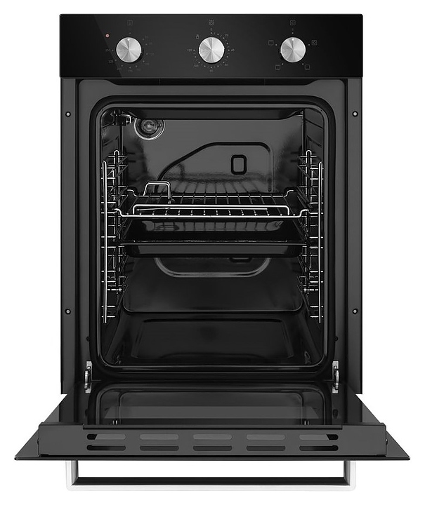 Электрический духовой шкаф HOMSair OES456BK используется в квартирах и частных домах для приготовления широкого спектра блюд из овощей, мяса, птицы и рыбы, а также выпечки десертов и хлебобулочных изделий. Модель оснащена поворотными регуляторами, механическим таймером и электрическим грилем. Корпус выполнен из металла. В комплект поставки входят решётка и универсальный противень. Режимы нагрева: