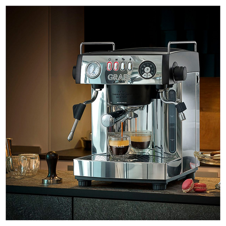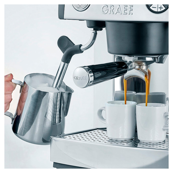 Кофеварка Graef Baronessa ES 902 предназначена для приготовления кофе в частных домах, квартирах, отелях и офисах. Модель оснащена программируемой панелью управления, встроенным манометром и съемным поддоном для капель с индикатором уровня заполнения. Корпус выполнен из полированной нержавеющей стали и алюминия, подогреватель для чашек, групповая ручка, нагревательный элемент и спиральная водопроводная трубка - из нержавеющей стали, нагреватель термоблока - из алюминия. Особенности: