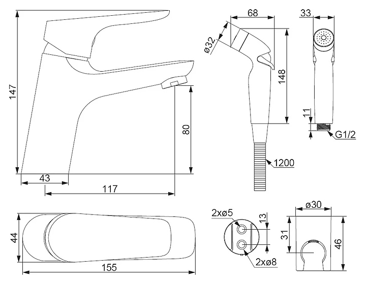 Смеситель для раковины Damixa Origin Bit 770300000 с гигиеническим душем, хром