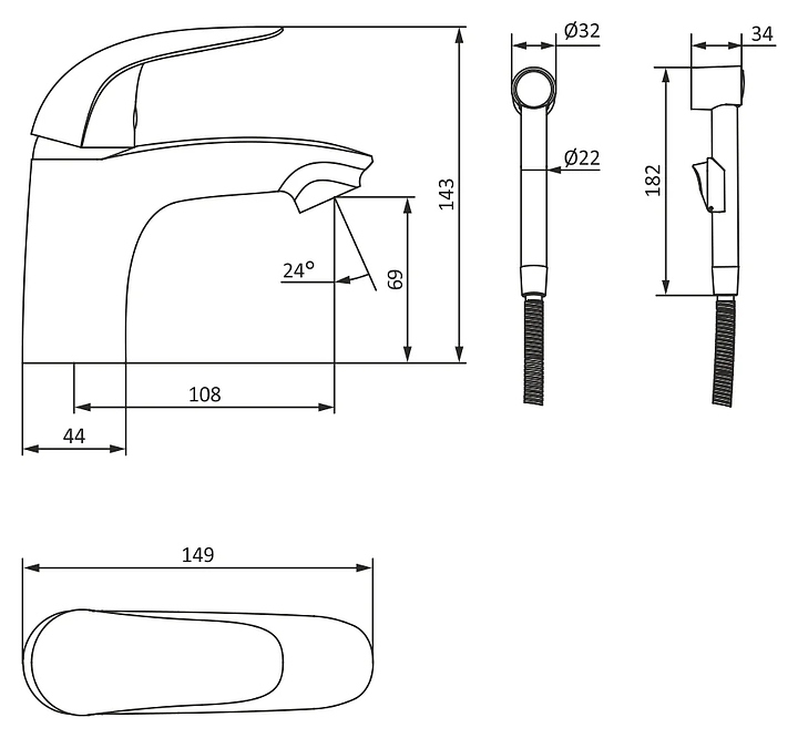 Смеситель для раковины Damixa Palace Bit 310300000 с гигиеническим душем, хром