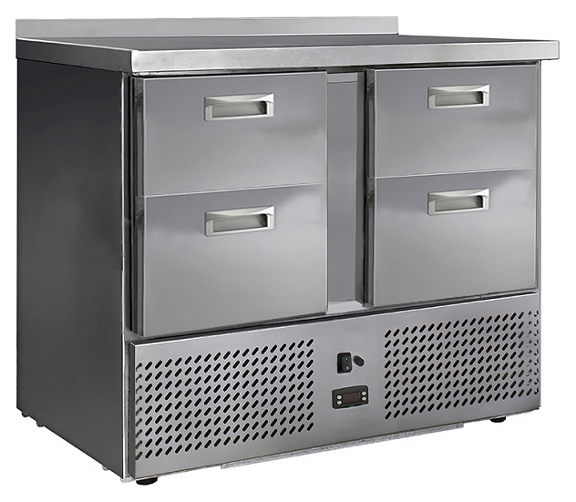 Холодильный стол Finist СХСн-700-0/4 предназначен для хранения предварительно охлажденных мясных и рыбных полуфабрикатов, заготовок для салатов, молочной продукции, охлажденных напитков и других пищевых продуктов на предприятиях общественного питания и торговли. Модель оснащена расположенным снизу агрегатным отсеком, столешницей, 2 холодильными камерами с распашными дверцами, устойчивыми ножками, регулируемыми по высоте, с подпятниками, кабелем питания с евровилкой и кнопочной панелью управления с цифровым дисплеем. Корпус выполнен из высококачественной нержавеющей стали, задняя стенка - из оцинкованной стали.