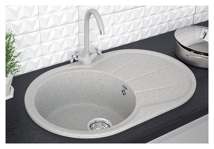 Мойка ULGRAN U-503-307 предназначена для рационального планирования рабочего места на кухне. Круглая чаша отличается простым уходом благодаря отсутствию углов, в которых скапливается грязь. Крыло-сушилка служит подставкой для посуды и продуктов. Мойка оснащена переливом и поглощает шум от льющейся воды и гремящей посуды. Изделие выполнено из искусственного мрамора, который гарантирует безопасность для здоровья человека и окружающей среды, имеет стойкость к появлению сколов и царапин, к пищевым и химическим красителям. В комплект поставки входят сливная арматура, корзинчатый вентиль и сифон. Дополнительные характеристики: