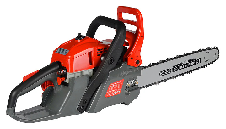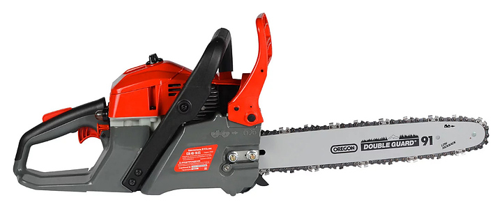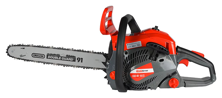 Бензиновая цепная пила EVOline CSG 40-16 ES предназначена для валки деревьев, раскряжевки древесных заготовок и обрезки сучьев. Модель оcнащена 2-тактным одноцилиндровым двигателем внутреннего сгорания, ручным стартером с вытяжным тросом и 2 транспортировочными рукоятками. Корпус, задняя рукоятка и фронтальный предохранительный щиток изготовлены из ударопрочного пластика в комбинации оранжевого и серого цветов, фронтальная рукоятка – из трубчатого металлического профиля с полимерной накладкой. Особенности: