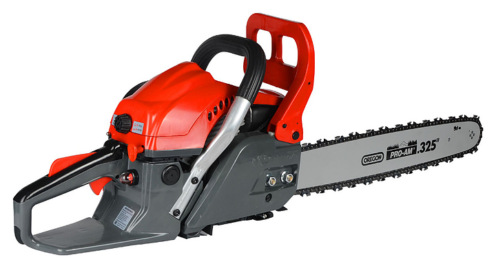 Бензиновая цепная пила EVOline CSG 58-18 ES предназначена для валки деревьев, раскряжевки древесных заготовок и обрезки сучьев. Модель оcнащена 2-тактным одноцилиндровым двигателем внутреннего сгорания, ручным стартером с вытяжным тросом и 2 транспортировочными рукоятками. Корпус, задняя рукоятка и фронтальный предохранительный щиток изготовлены из ударопрочного пластика в комбинации оранжевого и серого цветов, фронтальная рукоятка – из трубчатого металлического профиля с полимерной накладкой. Особенности:
